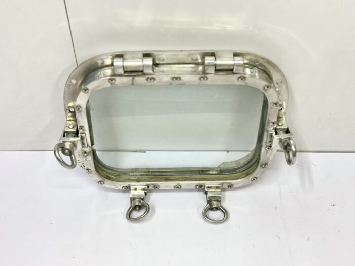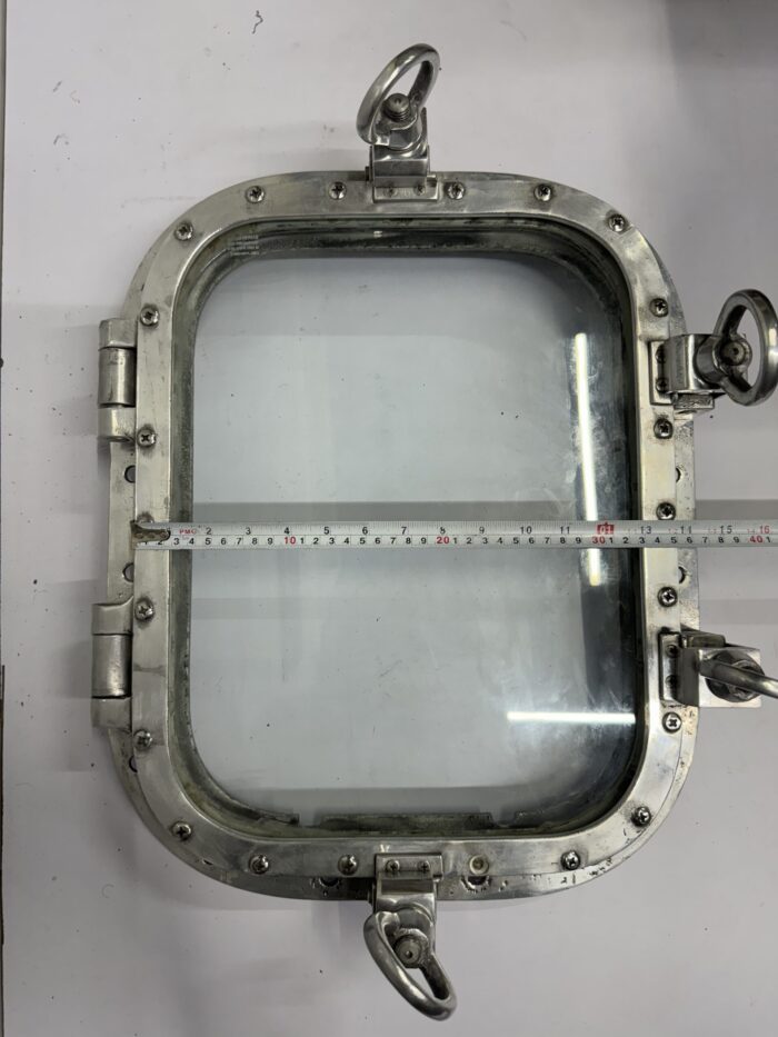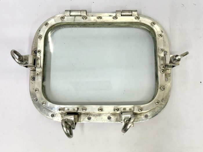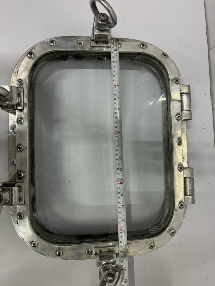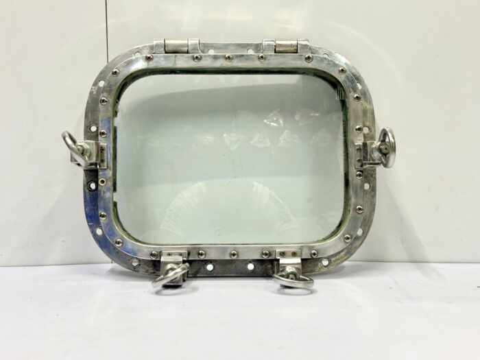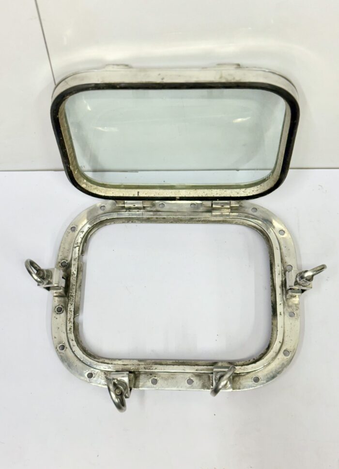 It is a Nautical Marine Style Home Wall Decoration Square Ship Window Portholes with 4 Dogs/Keys salvaged from Old supertanker Ships. It is a square shape window used on ships to admit light and air. Through Porthole we can see the outside world. It will look great on your home wall to give a Vintage nautical look. It is made up of solid Aluminum metal and glass and it is easy to install. It is built to suit your home, bathroom, patios wall decoration. Designed for internal as well as external applications. The metal is sturdy and strong. We have a bulk quantity of portholes in stock. Decorate your home today with one of our Portholes Window products!