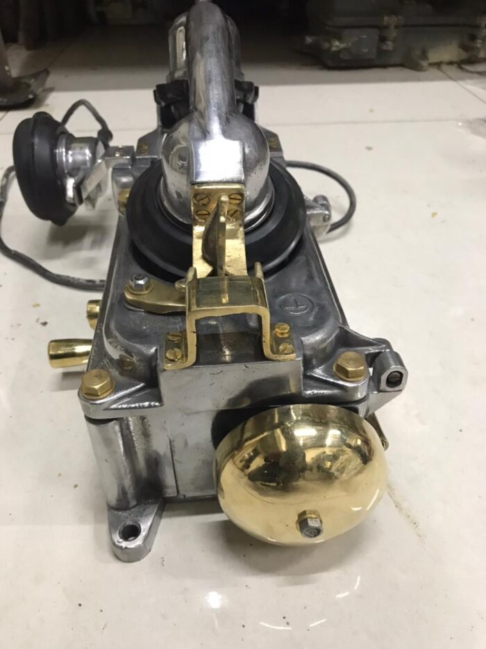 Discover the charm of vintage design with our Old Refurbished Wall Mount Antique Aluminum & Brass Fitting Ship Sound Powered Telephone. This unique silver aluminum metal machine seamlessly combines nostalgia and functionality, featuring a beautifully polished aluminum finish and a classic phone attachment. Perfect for collectors or as a striking decor piece, it adds a touch of maritime history to any space while offering a conversation starter that echoes the elegance of a bygone era.