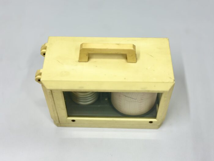 It is an Antique Maritime Meteorological Instrument temperature and humidity Nautical Barograph. The barograph is a device that records the changing air pressure on a chart. A barogram is another name for a barograph chart.