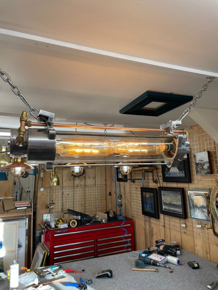 Illuminate your space with this Original Antique Explosion Proof German Vintage Fluorescent Twin Tube Light, a striking light fixture that combines functionality with timeless design. Crafted with durable materials, this unique hanging light not only enhances your decor but also ensures safety and reliability in various environments. Its vintage charm and robust construction make it a perfect addition to both industrial and contemporary settings, providing a warm, inviting glow while showcasing its historical significance.