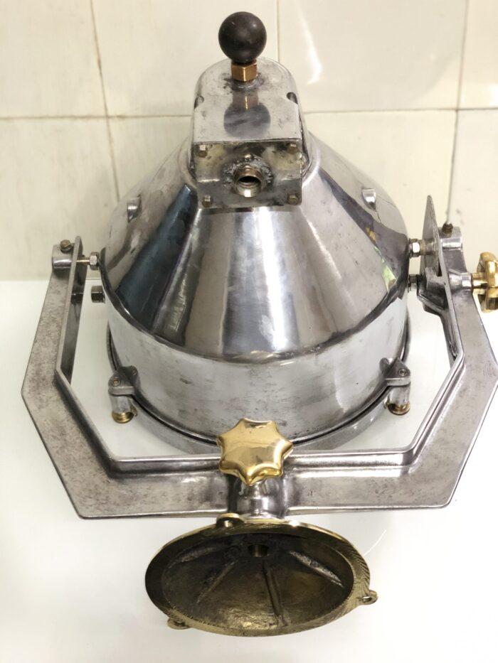 This solid aluminum & brass metal Signal Spotlight comes with its genuinely reclaimed original parts from old supertanker ships. These lights are operative and functional hence accessible and easy to temper. It can be used as a table spotlight and a searching spotlight. The original glass provides excessive light in case of the light source. We have a bulk quantity of nautical antique lights in stock.