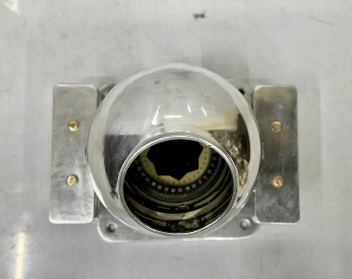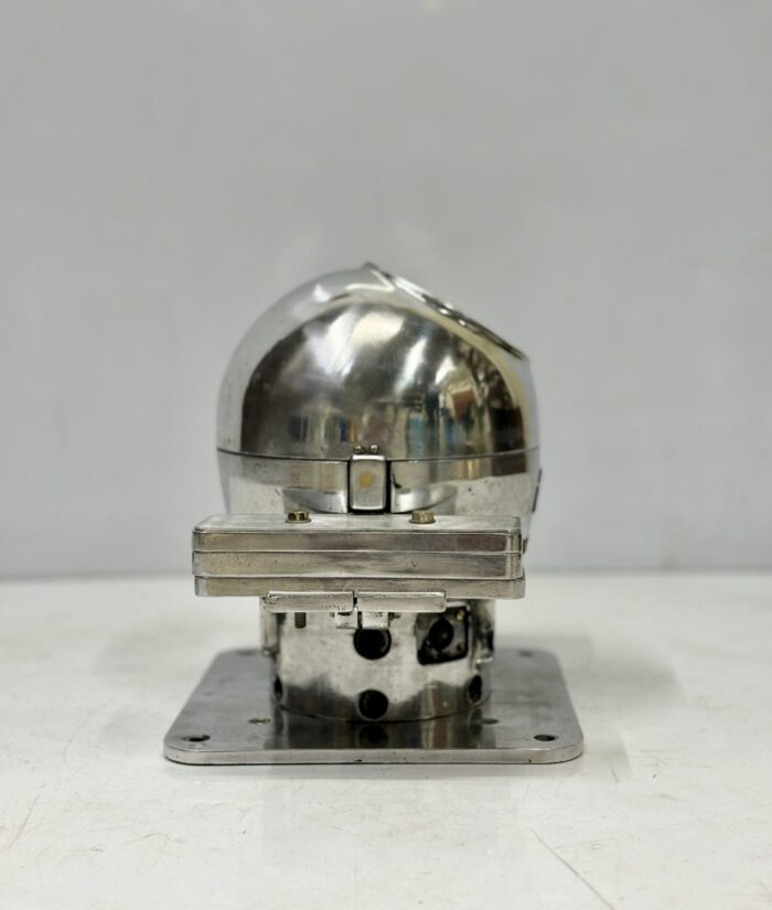 The historical Russian Soviet kit era Macca compass binnacle is a magnificent example of a nautical navigation instrument for sailing yachts and boats. It is made up of smooth Aluminum Metal. Made in Russia.