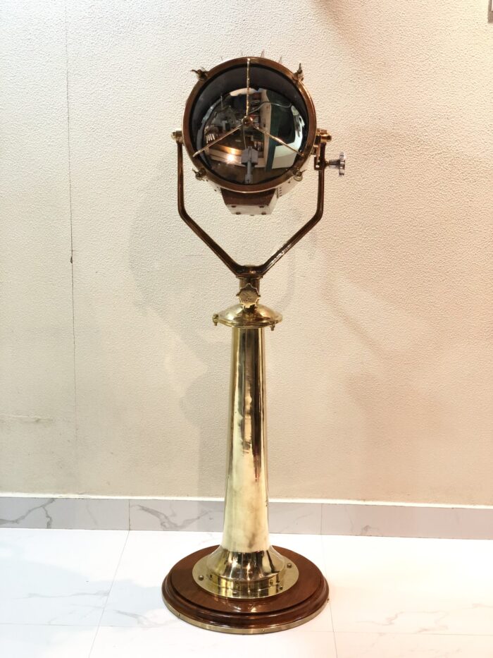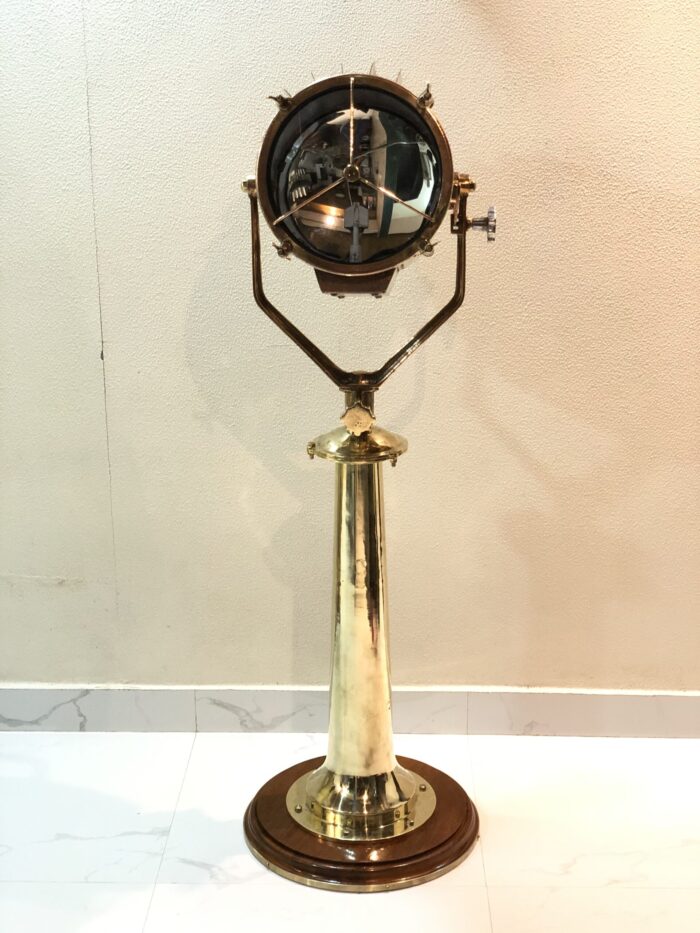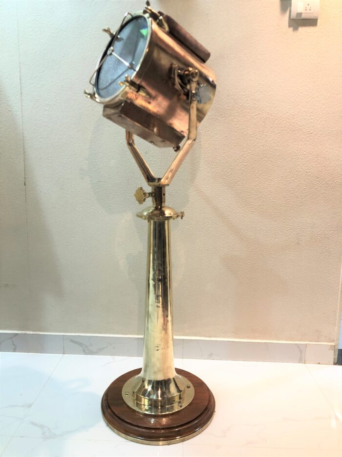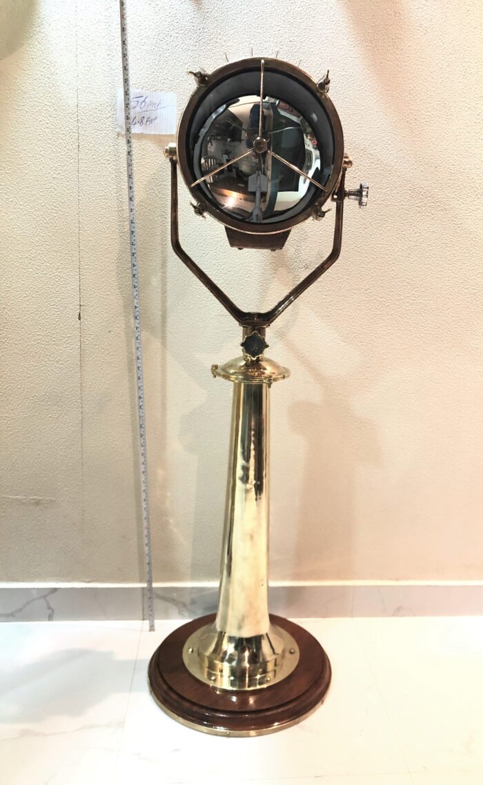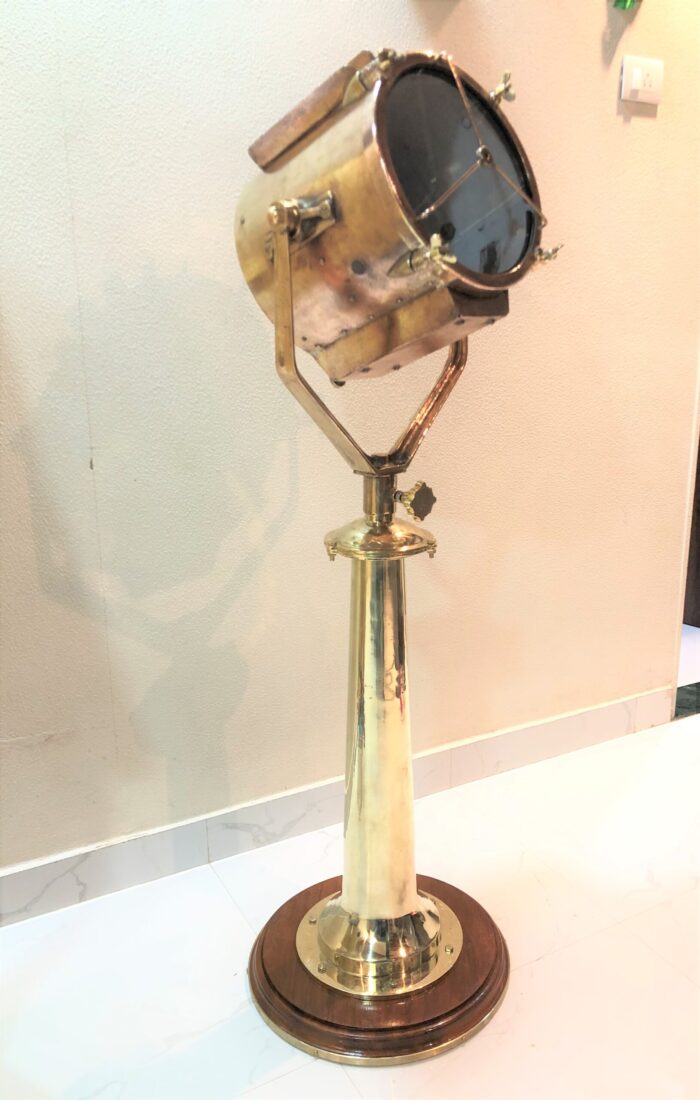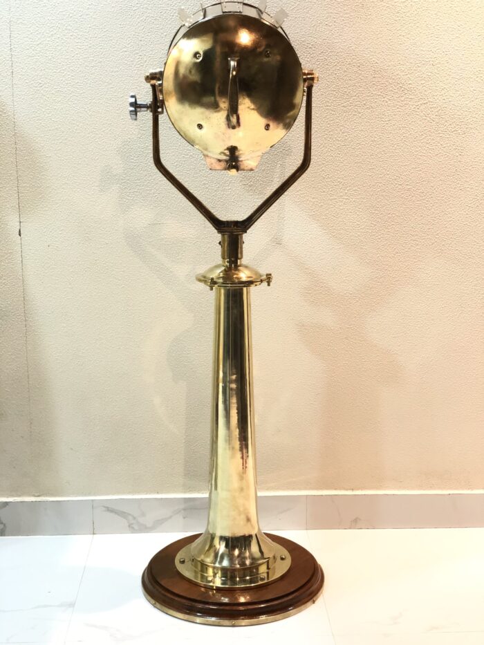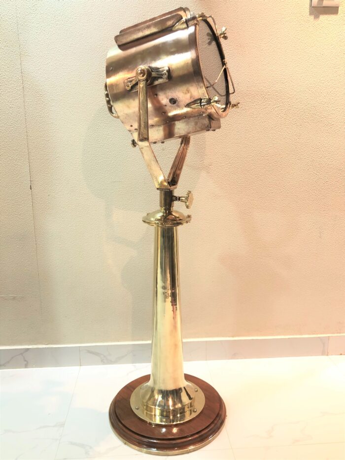 This Long neck brass signal spotlight is converted into a floor lamp. Made by Francis – Lucas Marine Ltd, Made in England. This signal spotlight is a durable, operational, and perfect for any environment. With an adjustable neck and sleek design, this lighting fixture is best for any house, office and restaurant along with its commercial application. We at HeritageAntique have restored this beautiful spotlight with genuine spare parts at a very efficient price.
