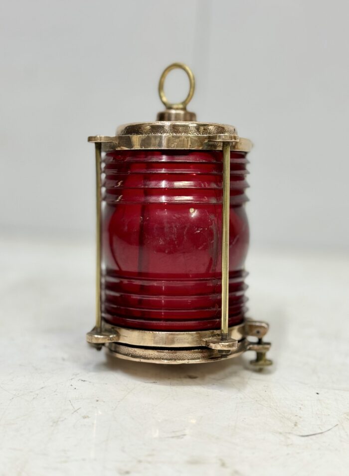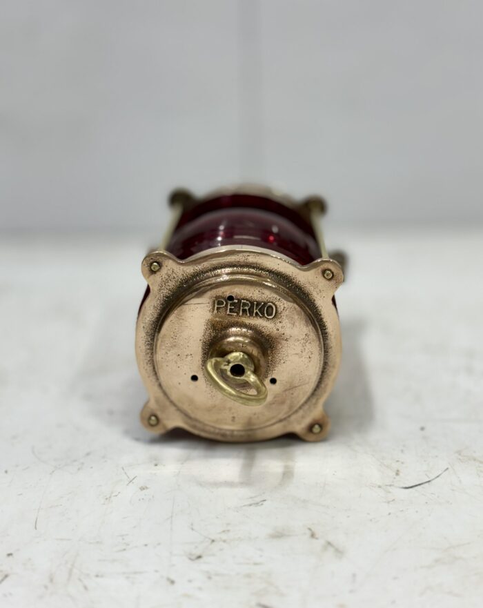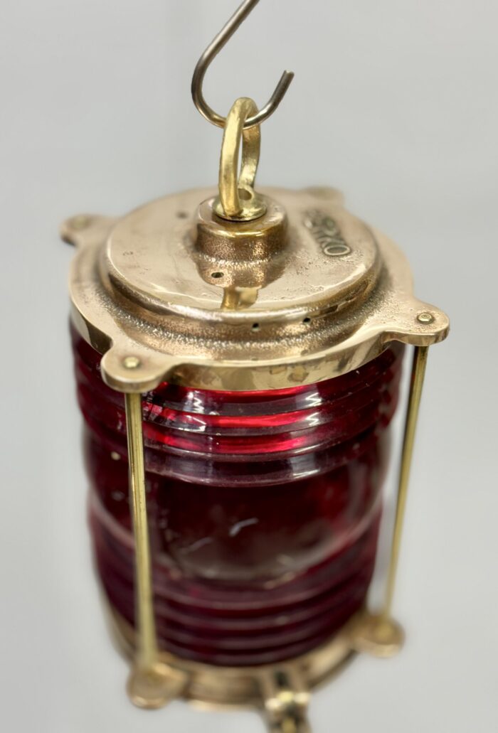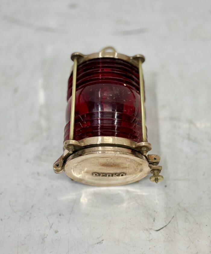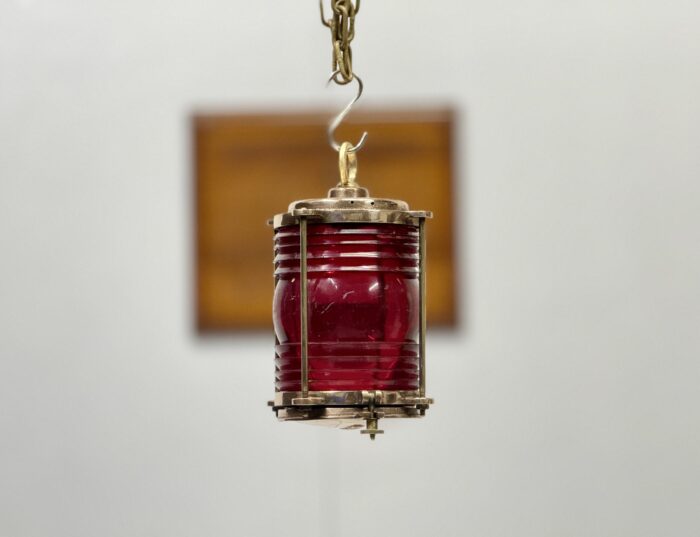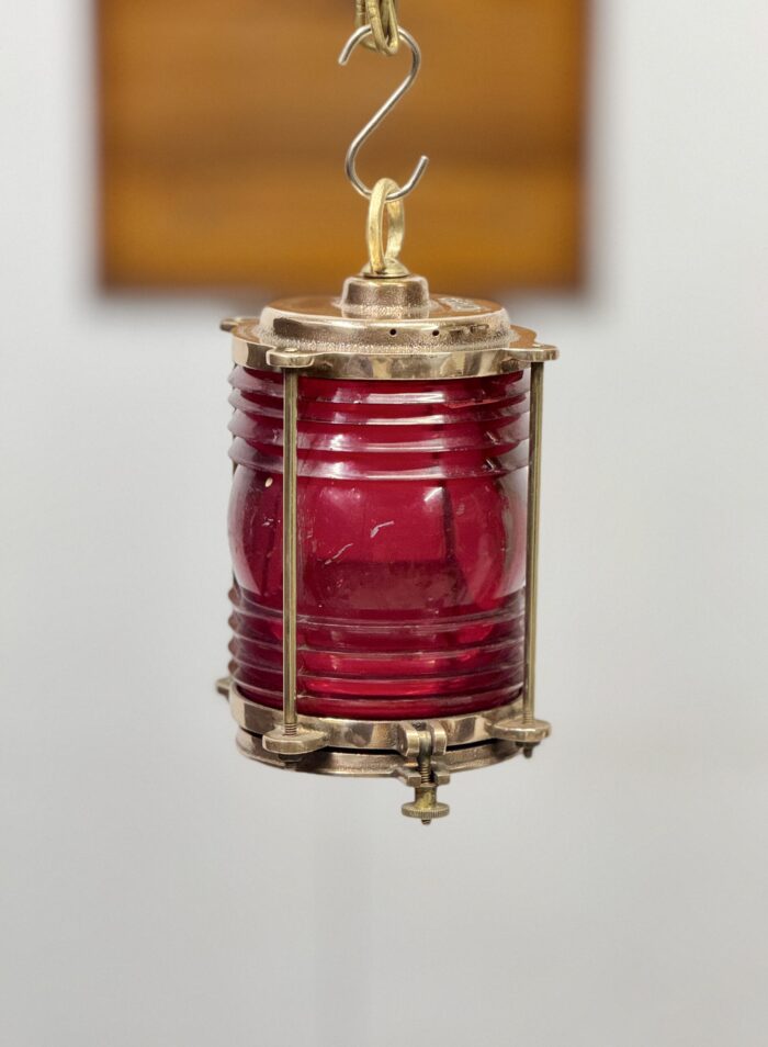 Illuminate your space with this stunning red glass lantern, expertly designed for marine vessel home decor. Suspended from a sturdy chain, this Perko nautical electric lamp adds a touch of elegance and charm to any room. Perfect for creating a cozy atmosphere, its unique design captures the essence of coastal living while providing warm, inviting light. Transform your home with this exquisite hanging lantern that seamlessly blends functionality and style.