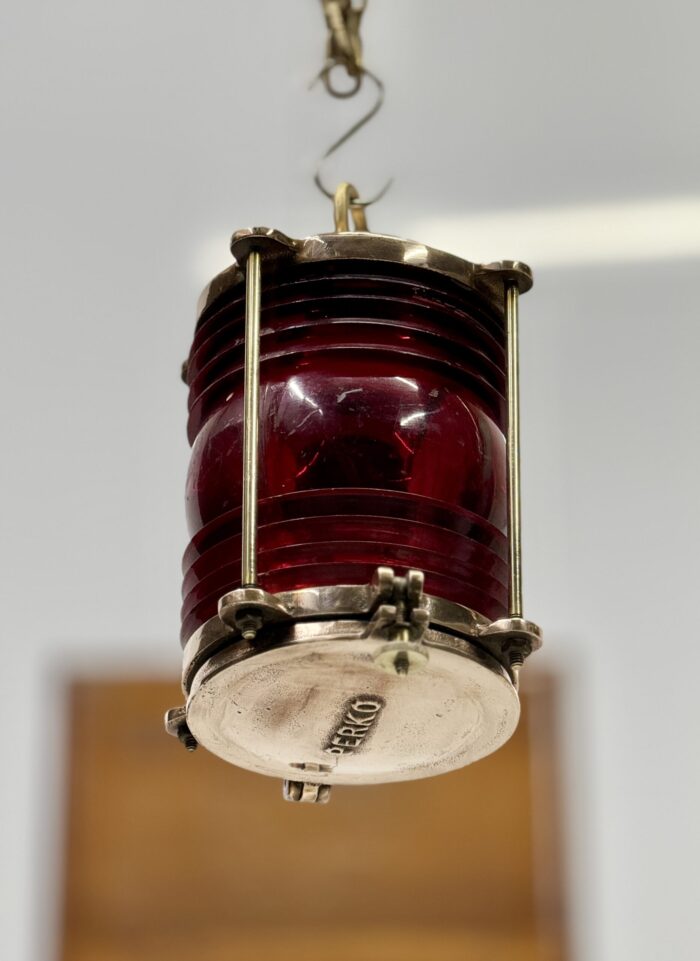 Vintage Reclaim Ship Nautical Ceiling Hanging Maritime Perko Electric Lamp – Red