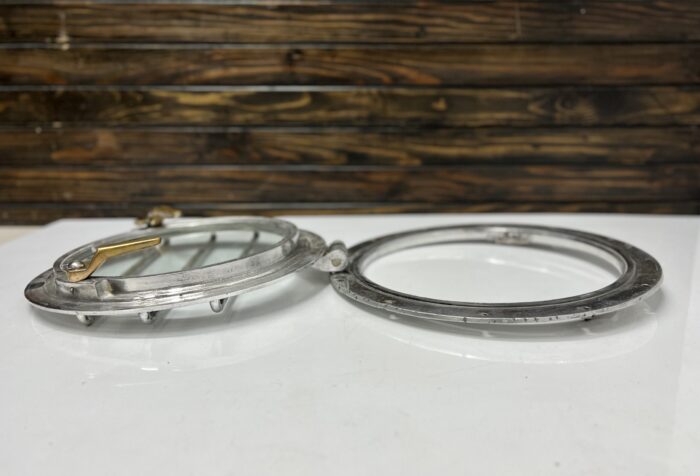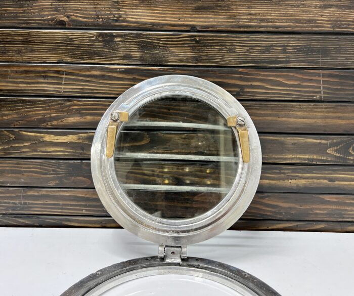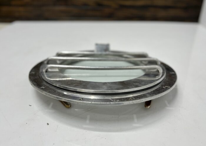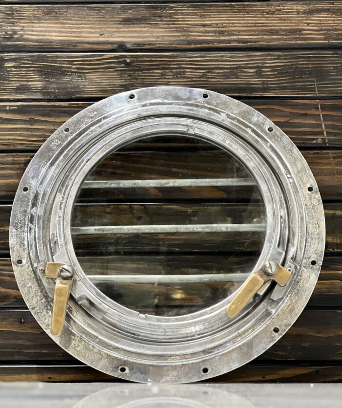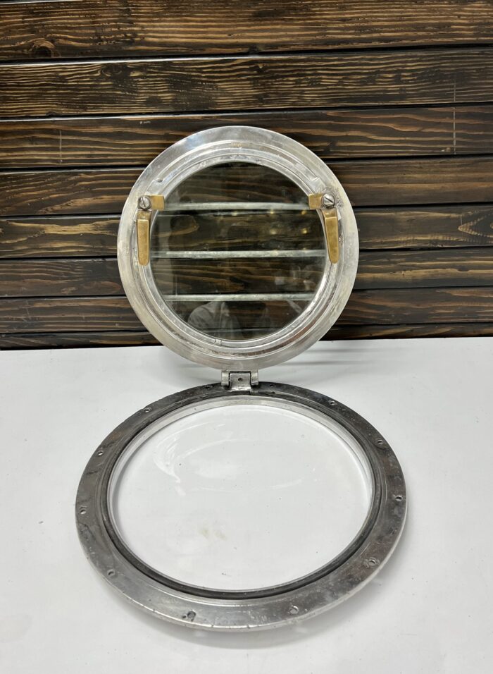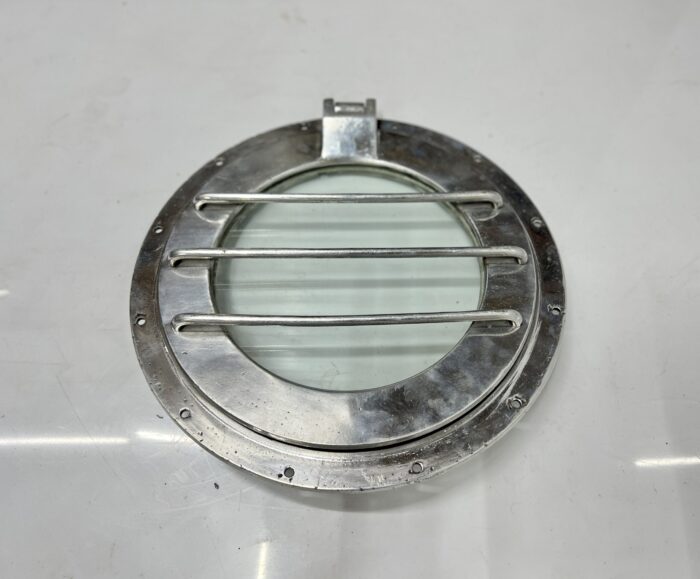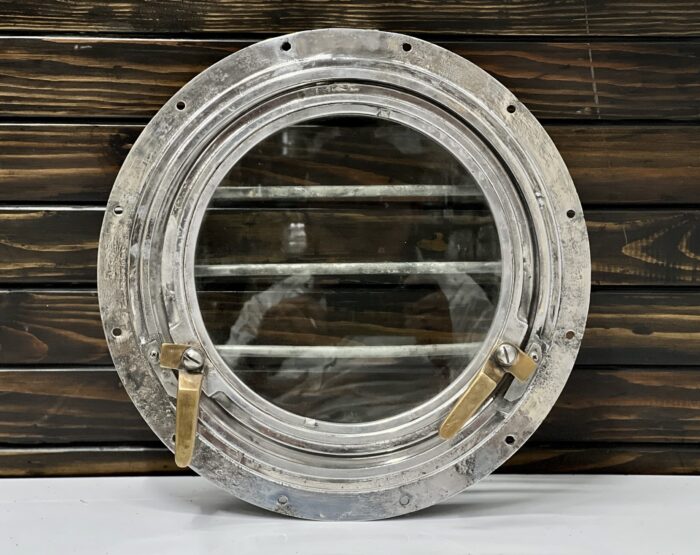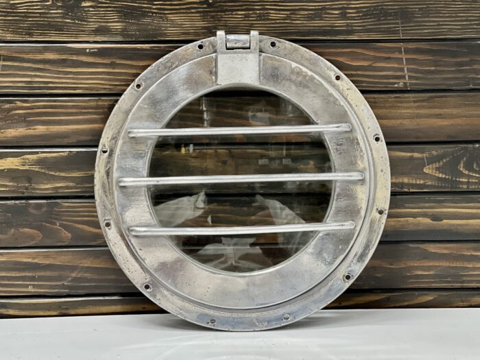 Vintage Silver Original Refurbished Aluminum Antique Porthole Window with Cage